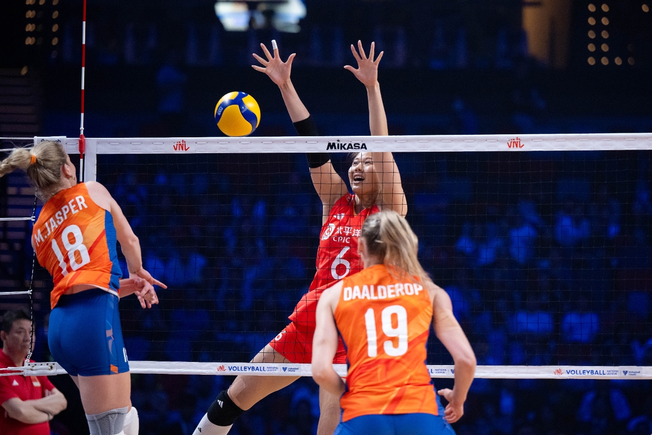 「银河娱乐集团世界女排联赛澳门2024」今日进行第二日赛事,焦点赛事由中国女排迎战荷兰,胜负将影响两队积分排名争夺巴黎奥运入场券的资格,双方不容有失。上一站录得3胜1负的中国女排今场派出袁心玥、李盈莹、王云蕗、王媛媛、龚翔宇及刁琳宇正选上阵,惜面对荷兰首局发挥不佳且失误较多,开赛初段连番失分,在落后6比13的情况下被荷兰以25比21先取一局。落后的中国队第二局改善不稳,加强拦网,在龚翔宇及王媛媛发力下助球队以25比23追平。第三局,中国队逐渐上力,李盈莹、吴梦洁及袁心玥助攻助守为球队以25比23摘下局点反先局数2比1。第四局两队打得紧凑,比分接近,荷兰队虽有歌莉玛及丹碧琪频频抢攻,但仍不及中国队的吴梦洁与队长袁心玥亮丽的表现,尾段中国队换入朱婷掀起赛事高潮,虽未能得分,但无损中国队以25比21胜出,局数3比1击败荷兰,取得开门红。中国队下一场将于5月31日对战日本队,力争两连胜。
