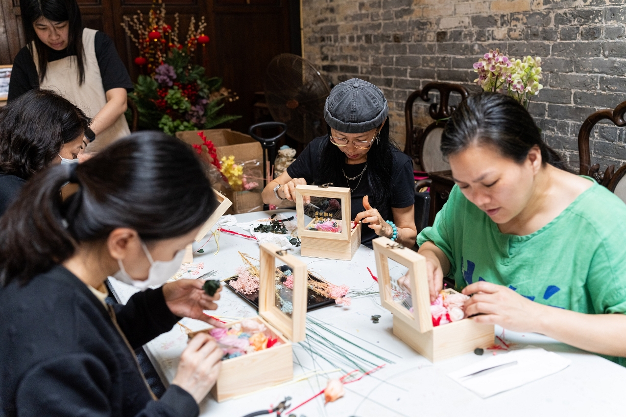 为让社区不同层面的市民与艺文爱好者在日常生活中感受艺术之美,文化局与不同机构组织社区专场:分别邀请澳门妇女联合总会组识亲子家庭参与“香绕古韵:汉服手搓线香体验工作坊”,邀请善明会的长者义工参加“花艺设计工作坊”,以及组识澳门文化艺术青少年计划学员参与“非遗零距离——解构鱼行醉龙节文化体验坊”,均吸引众多参与者。