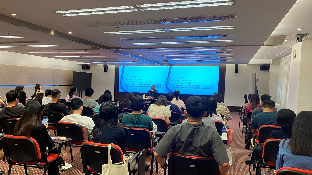 骆教授于讲座中详细讲解了《宪法》与《澳门基本法》的重点内容及关联性,指出两法共同构成了澳门特区的宪制基础,以及《澳门基本法》对维护中央全面管治权、落实爱国者治澳原则和保障澳门“一国两制”实践行稳致远的重要意义。此外,讲座亦安排了法务局法律人员为教学人员讲解澳门特区的刑事法律制度、常见青少年犯罪行为及相关刑责等内容。