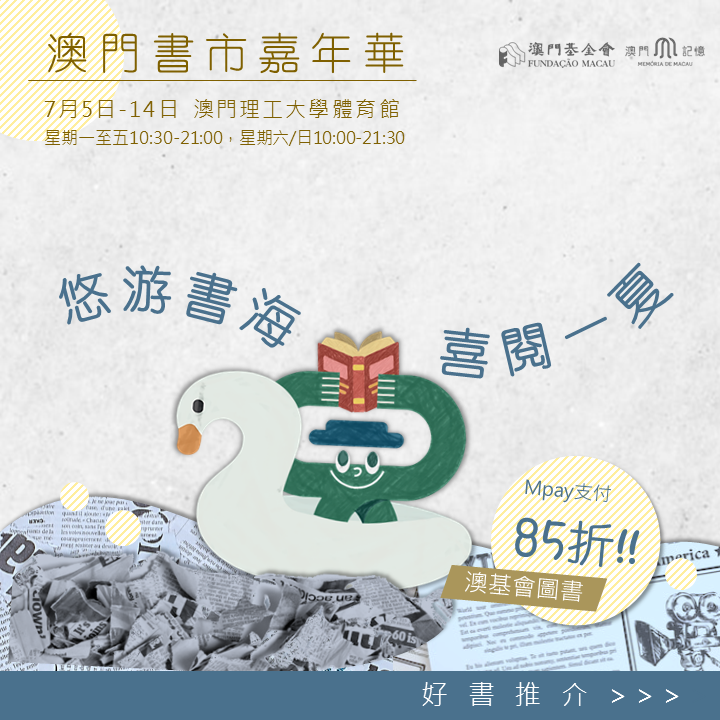 “第二十七届澳门书市嘉年华”在7月5日至14日期间于澳门理工大学体育馆举行,澳门基金会展出数百种图书,并推出MPAY澳门钱包支付85折优惠,以飨读者。澳基会的“澳门记忆”文史网将于书展期间举办“记忆沙龙”特别场,邀请前澳门博物馆前馆长陈迎宪先生主讲 “海洋的澳门:1445・琉球人抵达蚝镜”,欢迎市民参与。
