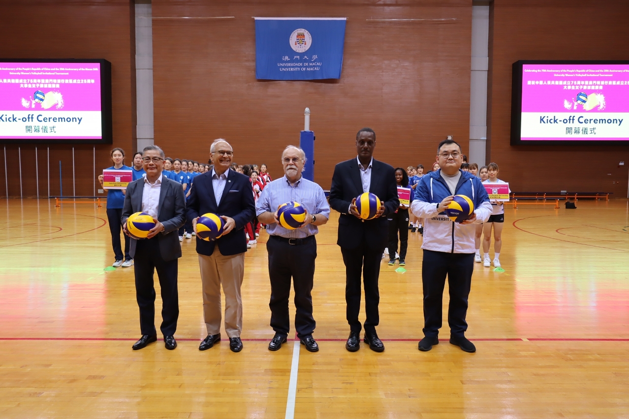 由澳门大学主办的“庆祝中华人民共和国成立75周年暨澳门特别行政区成立25周年—大学生女子排球邀请赛”一连两日在澳大举行,来自澳门大学、香港浸会大学、兰州大学和莫桑比克马普托师范大学的女子排球队同场竞技,促进交流和友谊。