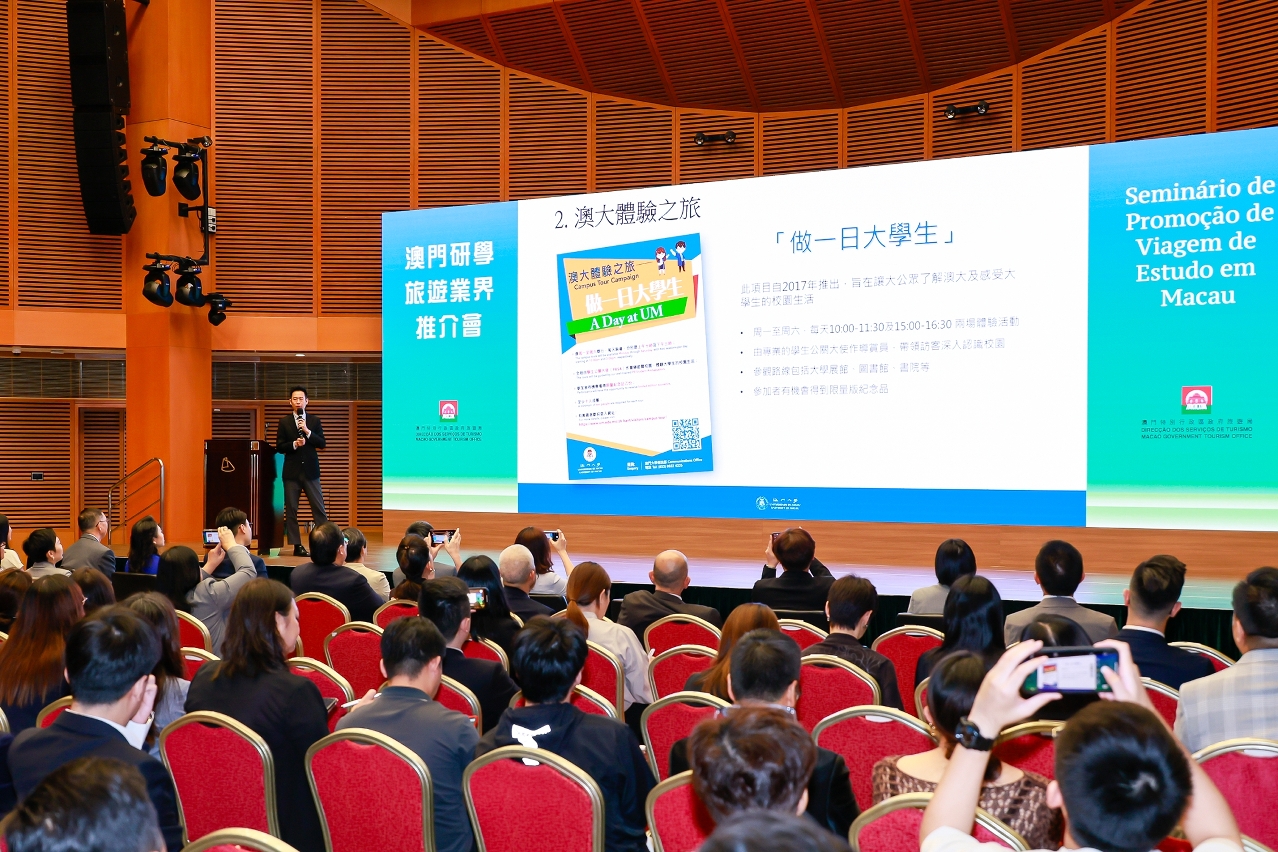 旅游局今(24日)举办“澳门研学旅游业界推介会”,邀请相关政府部门、私企及高等院校介绍各自领域的研学资源,让旅游业界熟悉澳门的研学资源,把握澳门研学旅游的发展机遇,推出具澳门特色的研学旅游线路及产品,促进“旅游+教育”的发展,共同打造澳门成为研学旅游目的地。