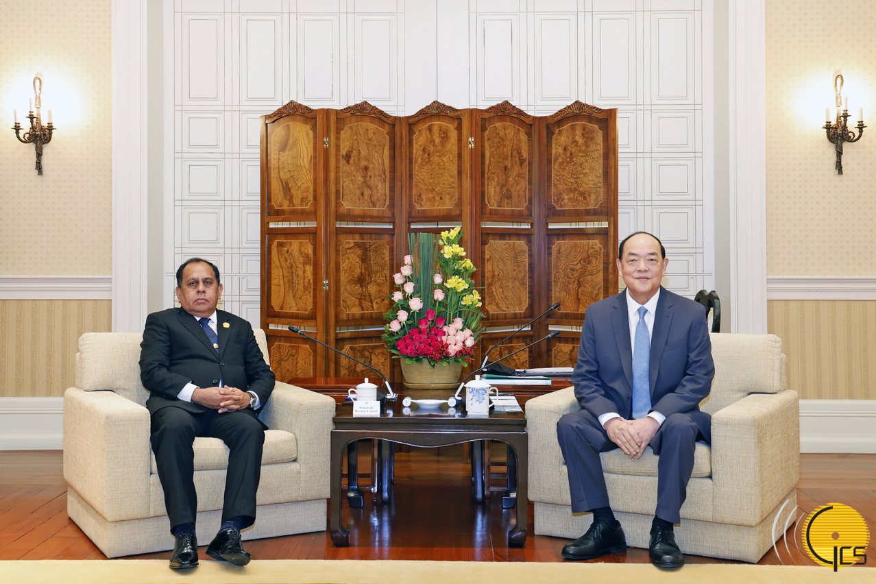 在签署仪式前,行政长官会见卡布拉尔部长及代表团一行,双方就经贸、旅游、教育、文化等议题进行交流。外交部驻澳特派员公署特派员刘显法、行政法务司司长张永春、社会文化司司长欧阳瑜、政策研究和区域发展局局长张作文、外交部驻澳特派员公署政策研究室主任马乃芳陪同会见。