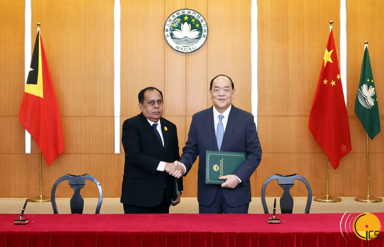 他又表示,澳门和帝力市签署《缔结友好城市谅解备忘录》,进一步巩固和加强彼此间的友好关系,双方以此为契机,继续拓展两地在经贸、旅游、文化、民间交往等领域的合作。澳门将充分发挥 “中国与葡语国家商贸合作服务平台”的作用,依托中葡论坛等机制,增进与东帝汶交流,并欢迎东帝汶通过中葡论坛,参与澳门及横琴粤澳深度合作区的发展和建设,拓展同粤港澳大湾区的合作。