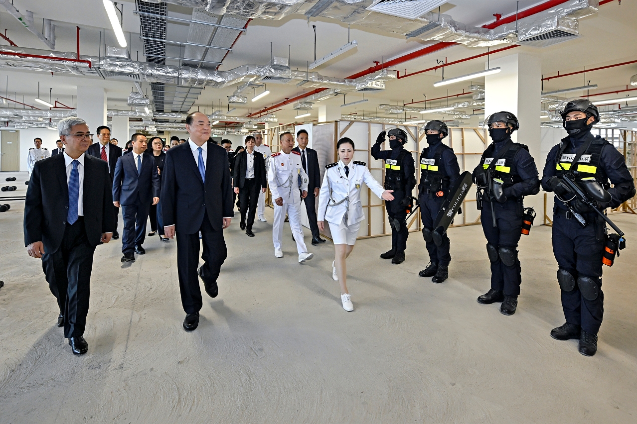 揭幕仪式后,一众嘉宾参观了大楼的多项设施及训练场地,了解行动通讯中心及全澳城市电子监察系统设备室的运作模式,亦到模拟训练场观看实地演练,以及到体育馆和器械训练室等运动设施进行视察。