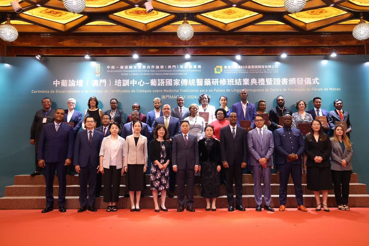 由中国—葡语国家经贸合作论坛(澳门)常设秘书处主办、粤澳合作中医药科技产业园承办的“葡语国家传统医药研修班”于10月25日在澳门美高梅举行结业典礼暨证书颁发仪式。