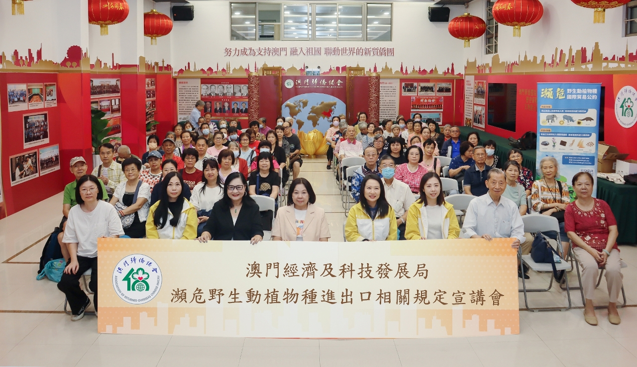 为持续做好《〈濒危野生动植物种国际贸易公约〉执行法》(第2/2017 号法律)的宣导工作,经济及科技发展局派员于本年10月至11月期间分别到访澳门归侨总会、澳门福建同乡总会、澳门江门同乡会、澳门工会联合总会北区综合服务中心及澳门街坊会联合总会,举办关于“濒危野生动植物种进出口相关规定”的宣讲会,向超过五百名业界代表及市民介绍本澳对包括兰花、仙人掌等濒危物种的进出口规定。由于部分中药材也属受管制范围,代表亦到访澳门中医药学会就相关主题作交流。