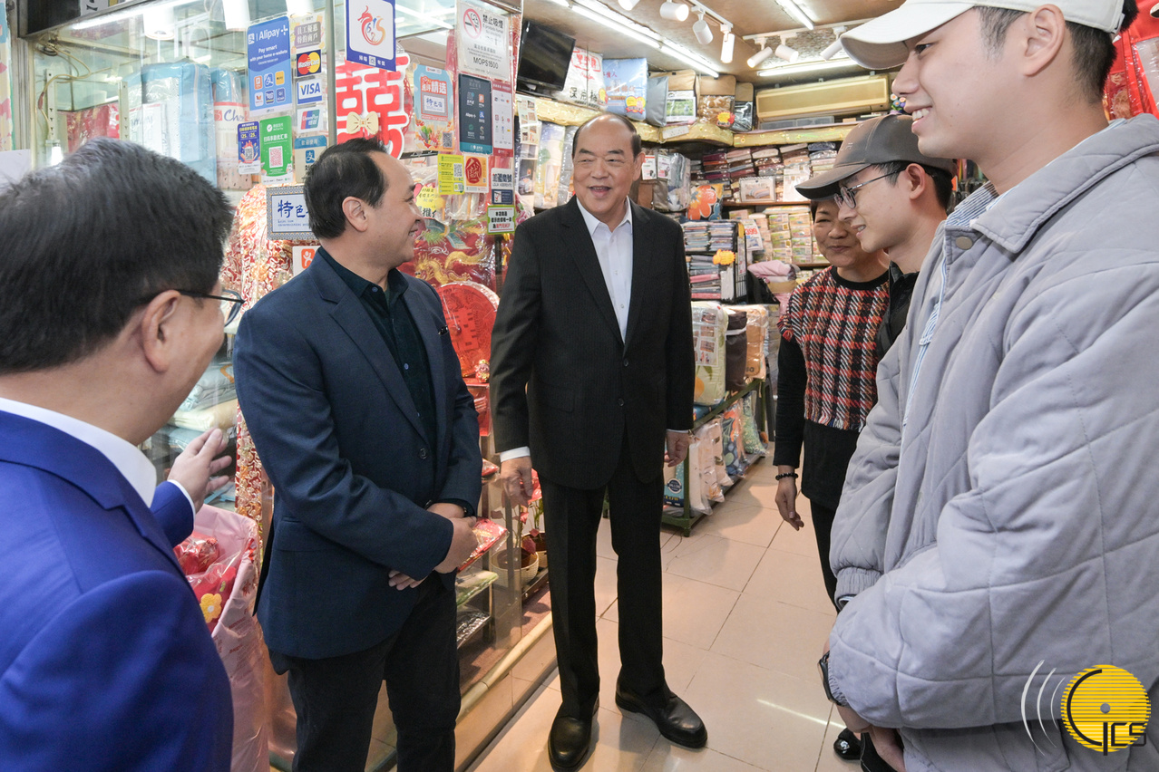 行政长官贺一诚今(13)日先后走访视察草堆街、新马路一带,瞭解区内片区活化项目、商户营运等情况,并与现场的居民和旅客亲切交流。