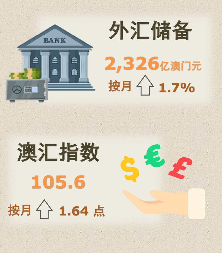 2024年11月的贸易加权澳汇指数为105.6,较上月及去年同期分别上升1.64点及0.93点,显示总体来说,澳门元兑澳门主要贸易伙伴的货币出现上浮的情况。