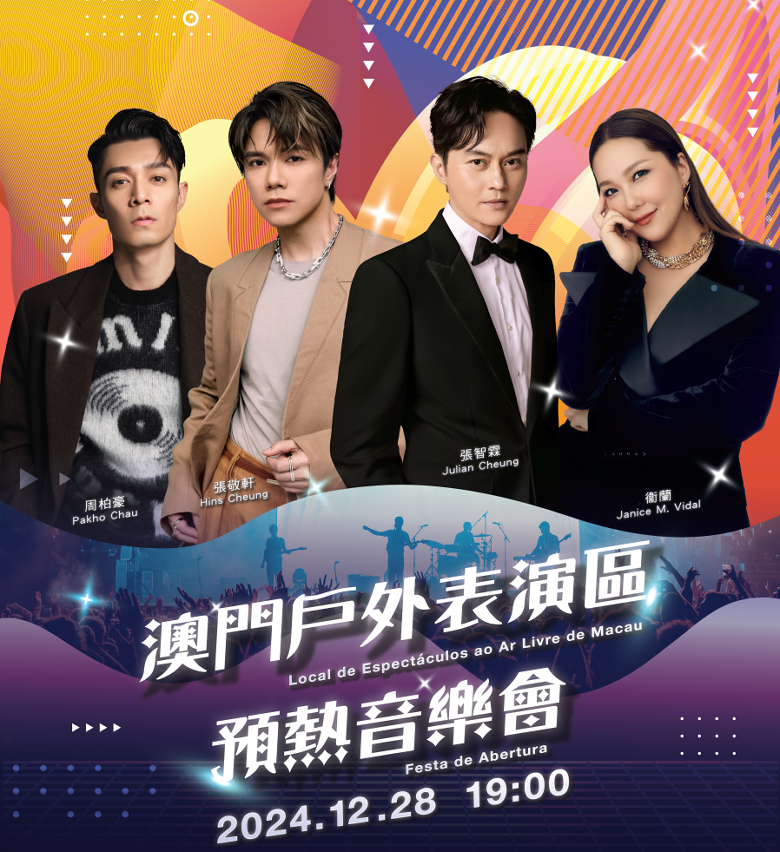 曾获第53届格莱美大奖,在2021年东京奥运开幕式上面对全球演奏的钢琴好手上原广美,将于12月31日携手澳门乐团呈献“爵士狂欢──2025澳门乐团新年音乐会”;“2024澳门除夕倒数演唱会”和“2024氹仔除夕倒数晚会”将于12月31日晚上,分别在澳门西湾湖广场和氹仔龙环葡韵举行,邀请香港着名歌手联同一众本地歌手及乐队,营造新年欢乐气氛。氹仔龙环葡韵现场更设有菲律宾、印度、印尼、缅甸及越南社群文化摊位,展示当地传统服饰、地道小食及饮品,彰显本澳多元文化共存的生活模式。活动当晚预计实施多项封路、安检及交通管制措施,有关安排将在稍后公布。