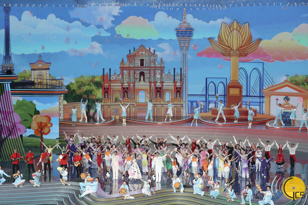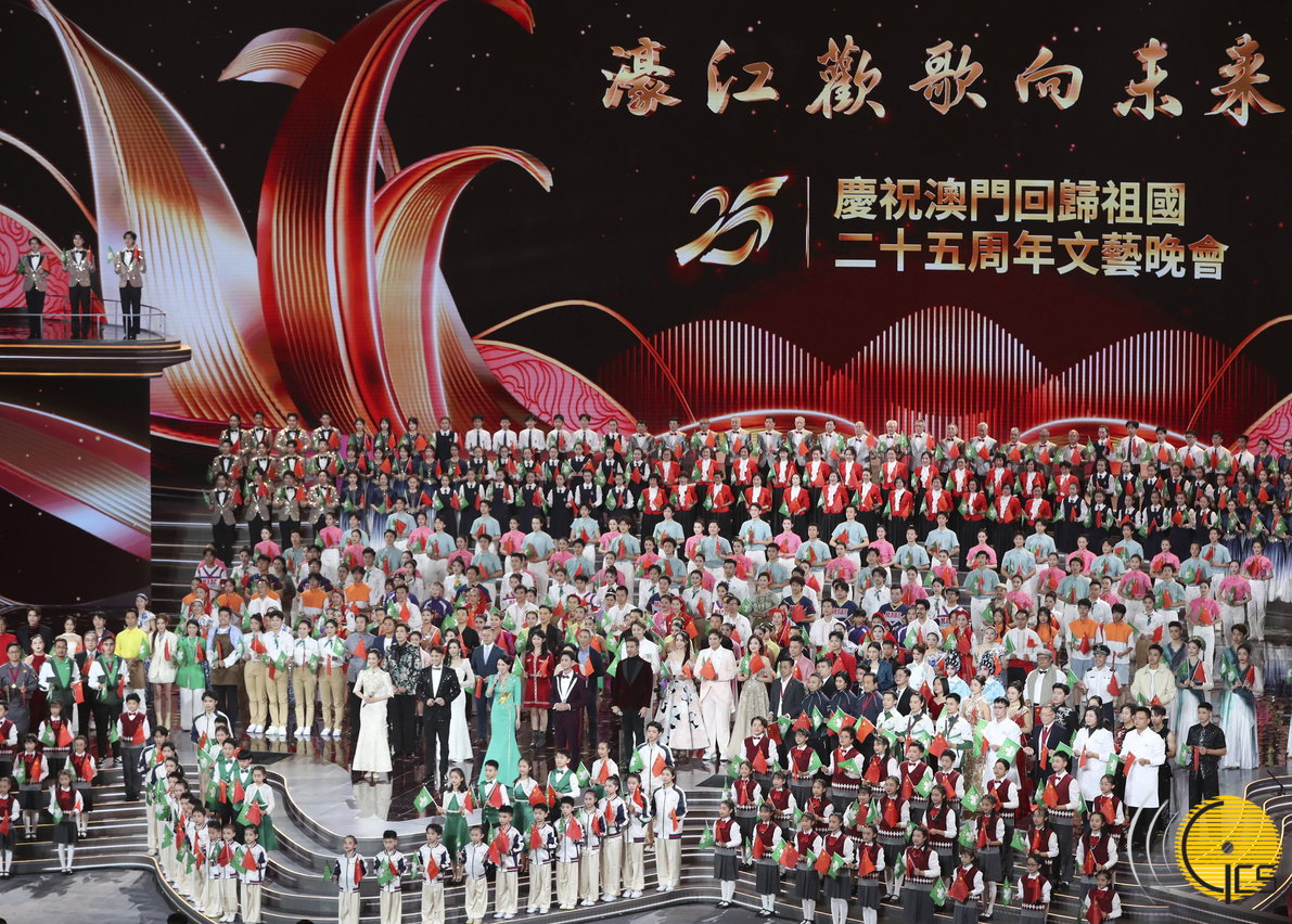 舞台上金莲花绚丽绽放,《我和我的祖国》、《今夜无眠》乐曲奏响。在《七子之歌》的深情旋律中,老中青三位澳门市民代表抒发了同澳门共成长的获得感幸福感。青春洋溢的歌舞《澳门你好》烘托出浓烈的节日色彩,器乐表演《镜海新韵》旋律悠扬,以大写意描绘粤港澳大湾区蓝图。音乐短剧《“AI”上横琴》以澳门居民的视角展现横琴粤澳深度合作区的蓬勃生机,粤歌《莲‧月明升海边》融合传统粤剧、歌舞,表达建设和谐幸福澳门的美好期盼,舞蹈《狮跃东方》和歌曲《传源》彰显文化传承发展的自觉自信。情景讲述《和祖国一起成长》生动呈现新时代澳门发展的激动人心时刻,合唱《我爱你中国》抒发澳门同胞对祖国母亲的真挚热爱。整台晚会精彩纷呈,高潮迭起,赢得观众们阵阵掌声。