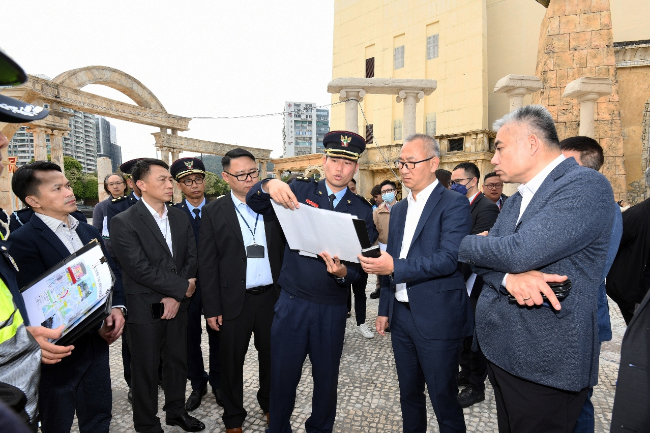农历新年期间本澳节庆活动丰富,预料参与人数众多,市面上存在一定的安全风险和治安隐患,为确保春节期间澳门的公共秩序,保障市民和旅客的生命及财产安全,于昨(23日),保安范畴多个部门的领导联合旅游局、文化局、市政署以及交通事务局的领导及主管人员,为新春节庆活动的安保工作进行了实地考察,巡视各部门的警务部署并听取工作汇报。