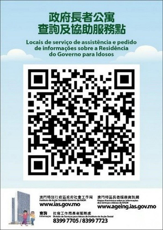 有关政府长者公寓的详情,可浏览社会工作局网页 www.ias.gov.mo 或澳门特区长者服务资讯网 www.ageing.ias.gov.mo。如有查询,可透过电邮di@ias.gov.mo,或于办公时间内致电83997705或83997723与社会工作局长者服务处联络,亦可亲临或致电向社会工作局或各协助申请的服务点查询。