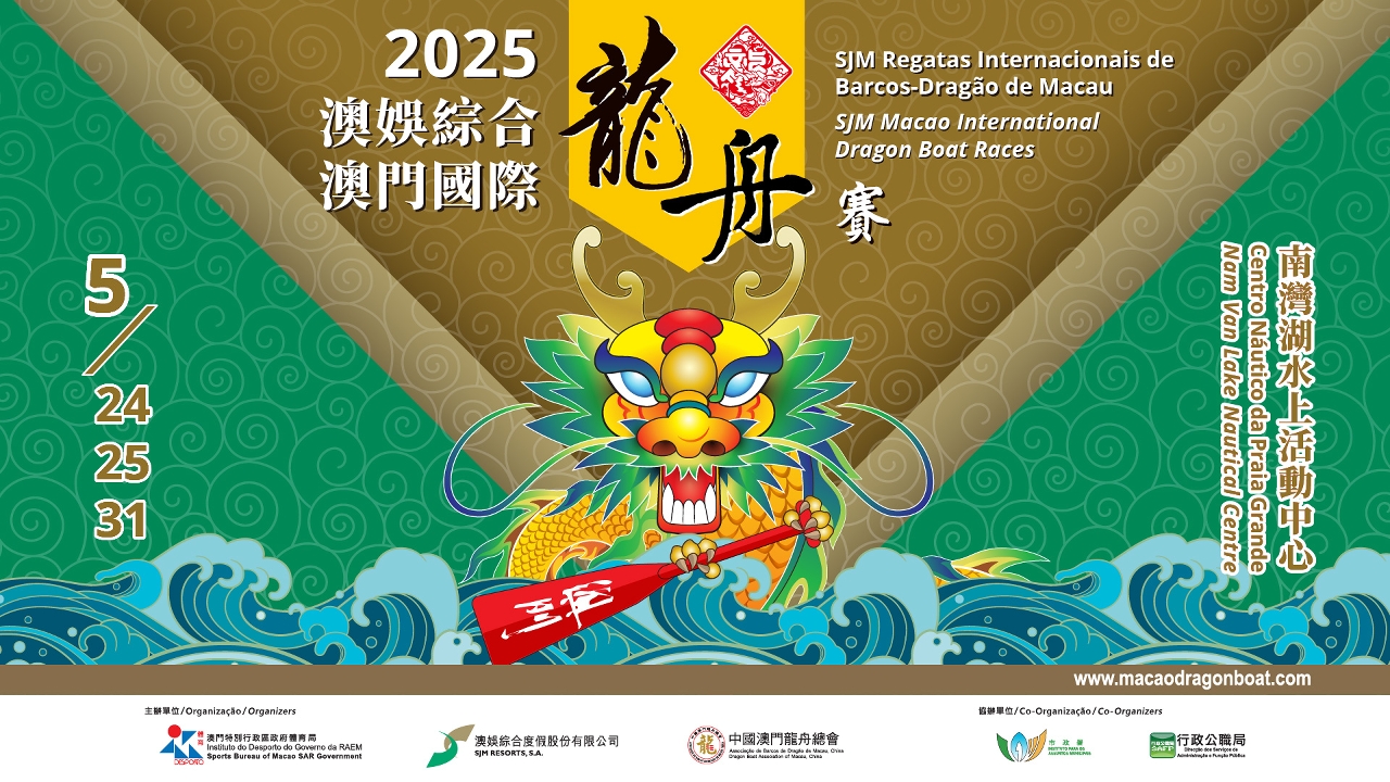 由体育局、澳娱综合度假股份有限公司(“澳娱综合”)及中国澳门龙舟总会主办,市政署及行政公职局协办的 “2025澳娱综合澳门国际龙舟赛”,将于本年5月24日、25日及31日在南湾湖水上活动中心举行。
