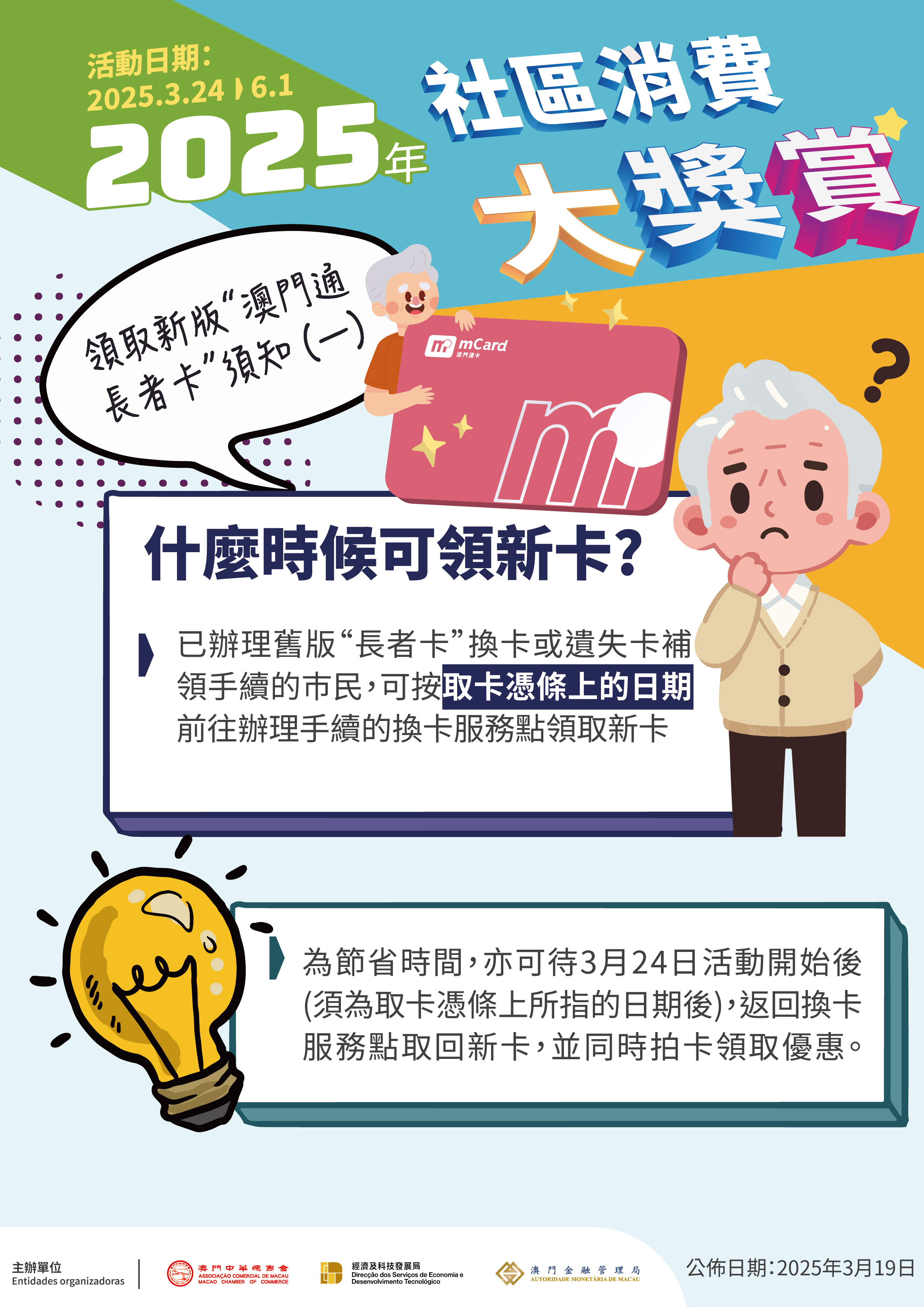 “2025年社区消费大奖赏”活动所设的长者消费立减优惠将透过新版“澳门通长者卡”提供。