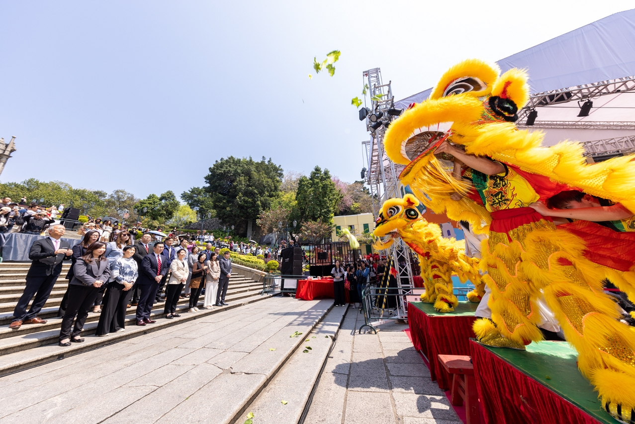 由文化局、澳娱综合度假股份有限公司、金沙中国有限公司、美高梅、银河娱乐集团、永利渡假村(澳门)股份有限公司及新濠博亚娱乐联合主办的庆祝澳门回归祖国二十六周年“2025澳门国际幻彩大巡游”将于3月23日举行,为祈愿活动顺利圆满,各单位代表今天(3月21日)在大三巴牌坊进行拜神仪式,并设醒狮表演,邀请参演艺团演出助庆,吸引众多市民及旅客围观欣赏,气氛欢愉。