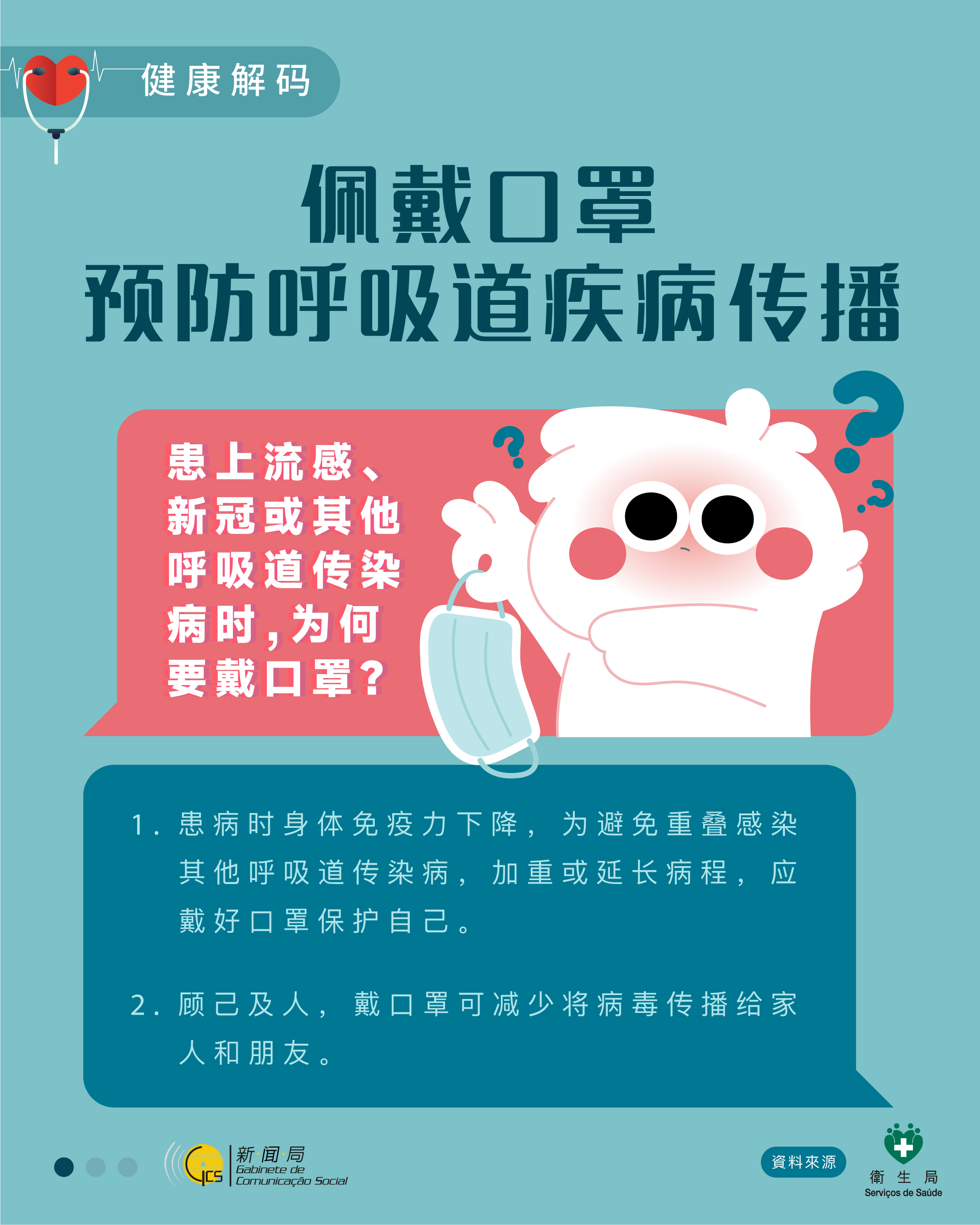 卫生局提醒,为减少患上流感或其他上呼吸道传染性疾病,应采取以下措施: