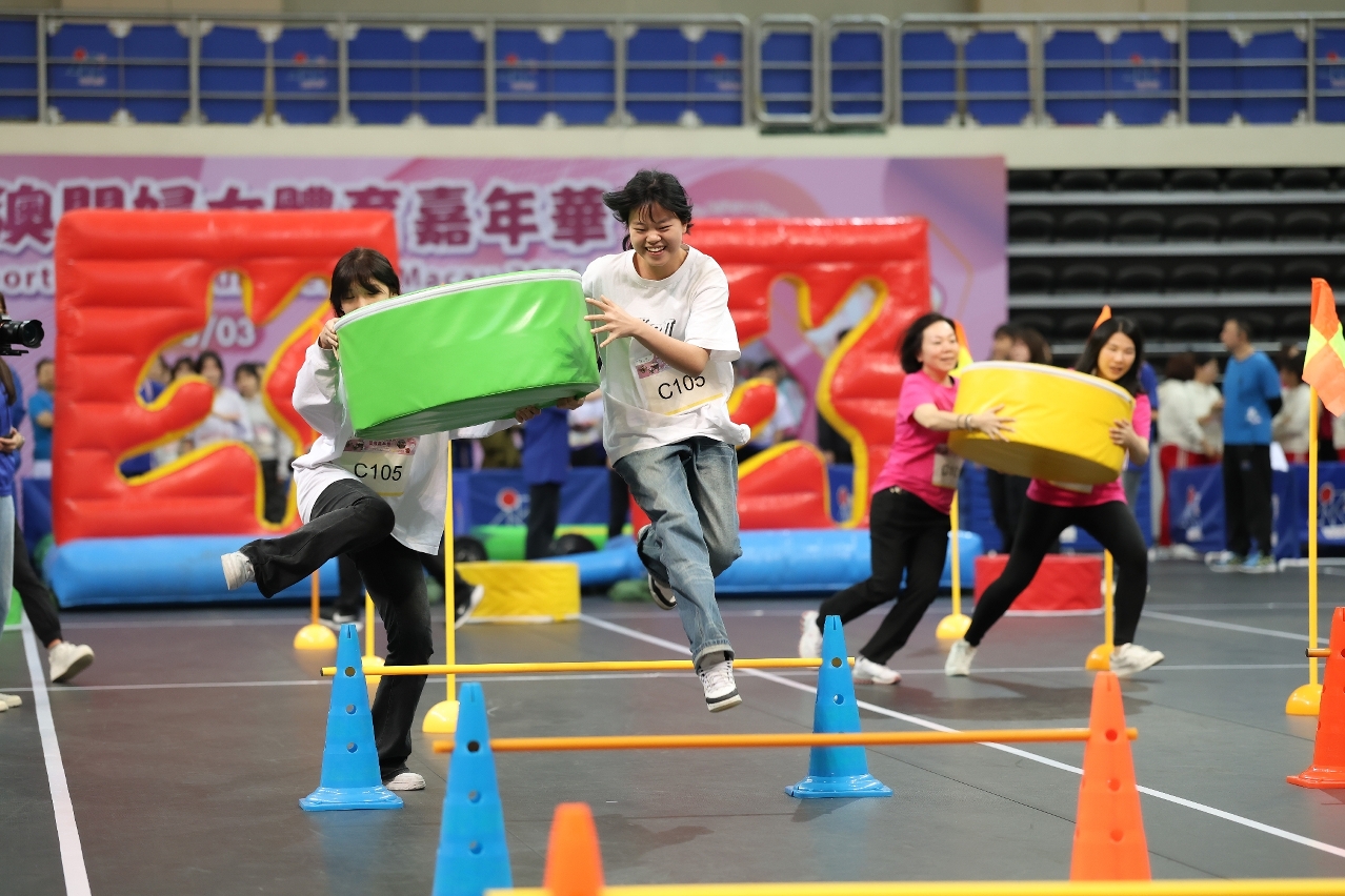 康体竞技活动则于今(23)日上午9时在塔石体育馆压轴上演,比赛分两回合进行,大湾区城市及横琴合作区亦派出队伍参与友谊赛,同场较劲争夺各项殊荣。为迎接年第十五届全国运动会的举办,当日竞赛项目亦加入相关元素,包括:羽毛球、乒乓球、排球及篮球,过程紧张刺激,各队伍发挥团队合作精神,同心合力,顺利过关。现场亦设置妇女健康咨询服务,为参加者提供相关妇女健康知识。各地妇女们透过本活动交流体育文化,共同分享运动带来的喜悦。