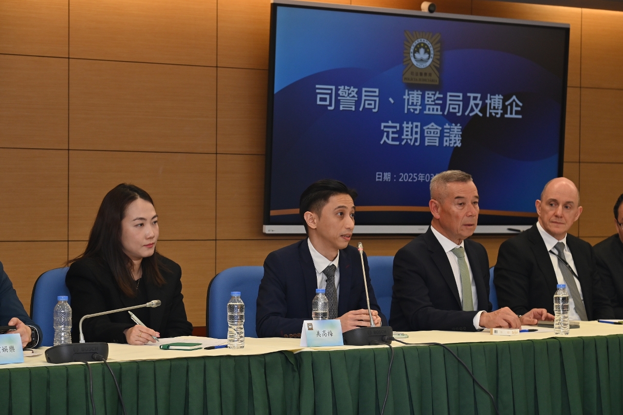司法警察局联同博彩监察协调局与六间博企保安部门举行定期工作会议,就娱乐场保安协作机制、犯罪趋势分析及智慧监管应用等议题深入交流,进一步强化三方合作,以促进澳门博彩业持续健康发展。
