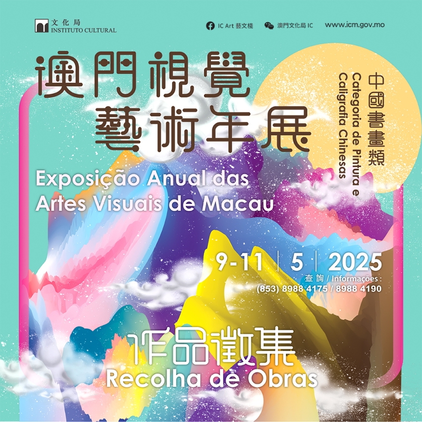 由文化局主办之2025年“澳门视觉艺术年展——中国书画类”将于5月9日至11日,在澳门文化中心“•ART空间”进行收件,征集中国书画类作品,包括国画、书法、篆刻及实验水墨创作等类别,欢迎本澳艺术家踊跃参加。