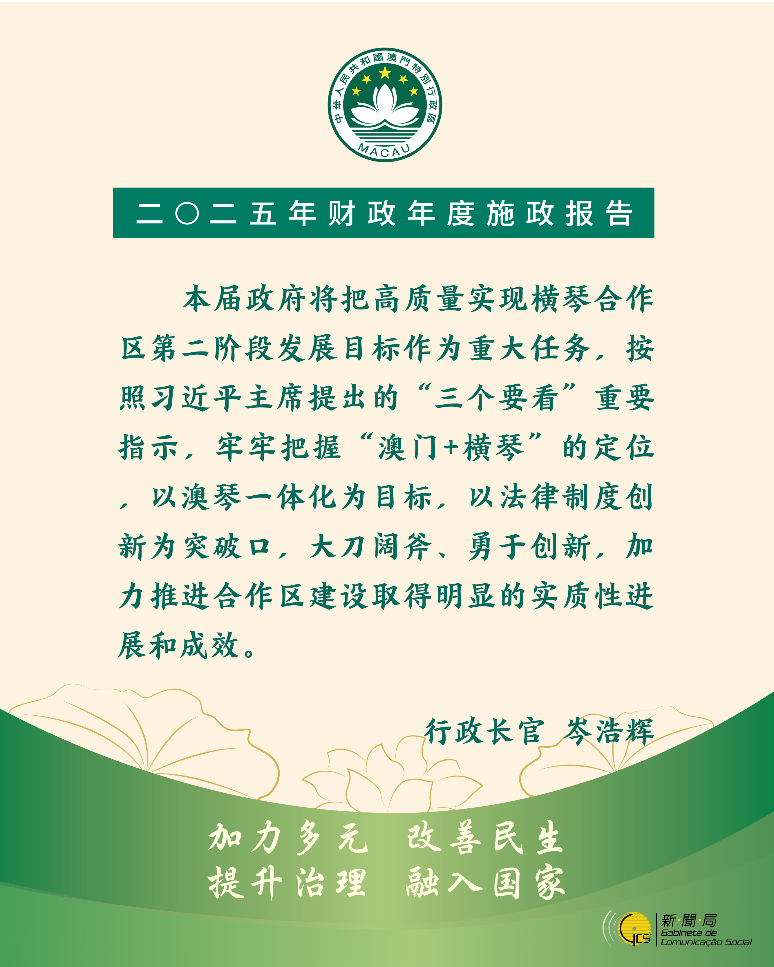 二〇二五年财政年度施政报告---以澳琴一体化为目标,加力推进横琴粤澳深度合作区建设