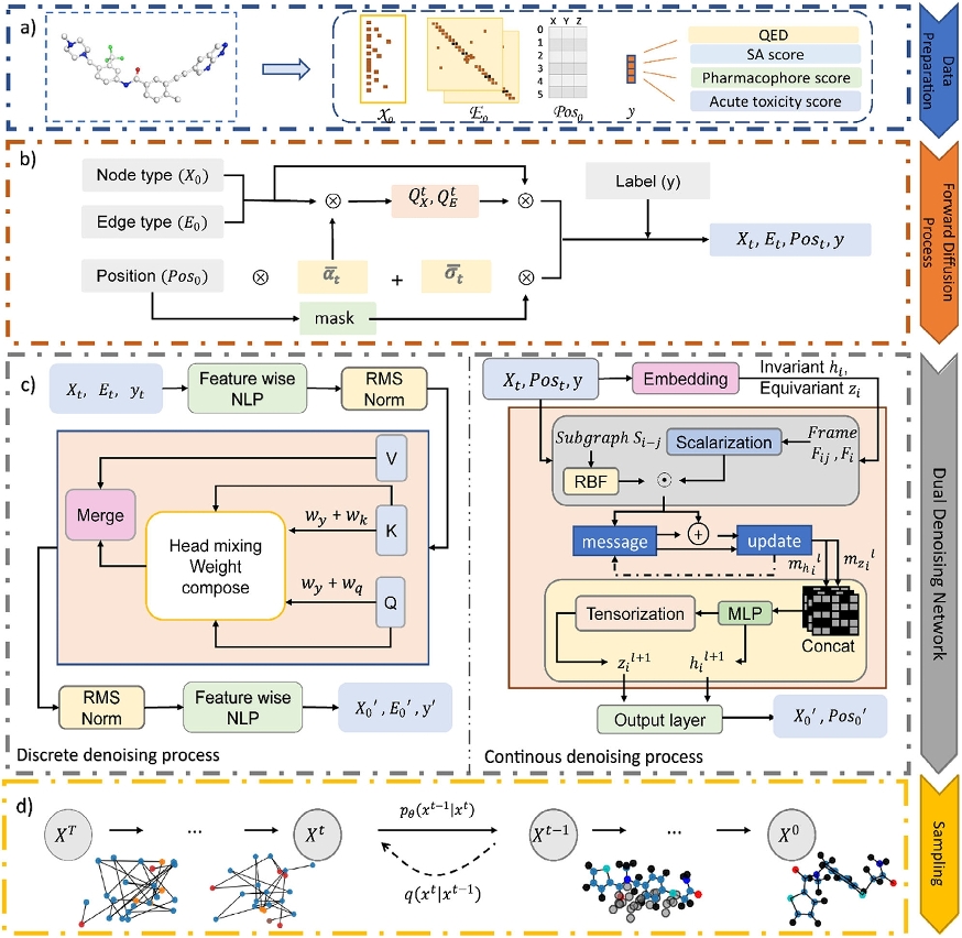 研究成果以“DiffMC-Gen: A Dual Denoising Diffusion Model for Multi-Conditional Molecular Generation” (双去噪扩散模型:用于多条件分子生成)为题,于国际学术期刊《Advanced Science》(《先进科学》) 发布,为新一代人工智能驱动的药物发现技术的推进提供新思路。