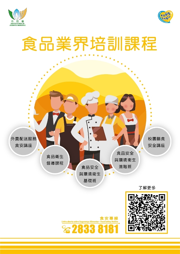 同时,市政署亦持续为本澳餐饮业界提供食品安全培训课程,协助本澳业界做好食品安全预防工作,加强业界的守法自觉性,提升卫生管理工作水平。如欲查询更多详情,可浏览食品安全资讯网(www.foodsafety.gov.mo)“食安心─卫生自查鼓励计划”及“食安教育及培训”专页,或致电2833 8181查询。