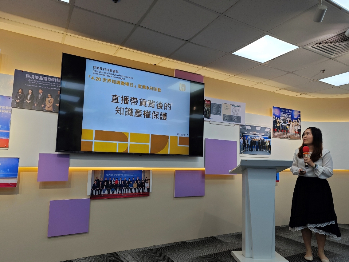 配合活动主题,经科局日前分别与澳门工商联会以“营商有道:知识产权保护”及澳门直播协会以“直播带货背后的知识产权保护”为主题,合办了两场知识产权法律专场讲座,吸引了来自不同范畴的澳门工商界及直播业界代表参加。