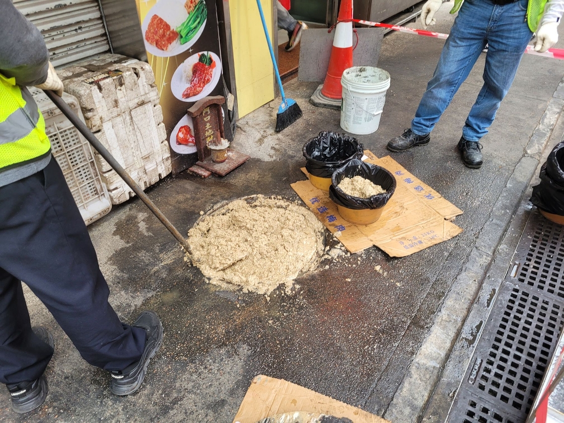 市政署优先处理水浸易发区域渠网,在日常巡查及渠网清理中,经常发现油脂凝固物及水泥砂浆等阻碍下水道,主要涉及食肆没安装合适隔油井或没定期清理,令油脂凝固物阻塞下水道;地盘则将未经处理的污水或建筑废料排至公共渠网。市政署联同相关部门持续巡查,第一季巡查饮食场所隔油井330次,对违规食肆发出实况笔录逾20宗;巡查各区地盘150次,发出实况笔录约10宗。市政署呼吁市民及商号切勿将垃圾、油脂等物料倾倒至公共街渠;业界须加强清洁隔油井及地盘废水过滤设备,切勿把水泥浆等建筑废料或油污排入公共下水道,另提醒地铺商户切勿将纸皮、发泡胶箱等随意于街道摆放,以免暴雨期间因冲积堵塞渠口,影响渠道的正常排放效能。