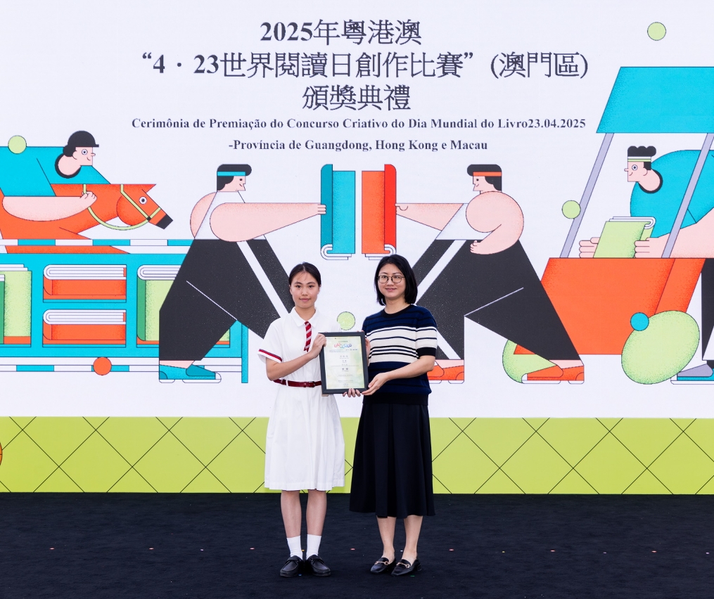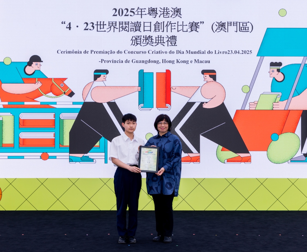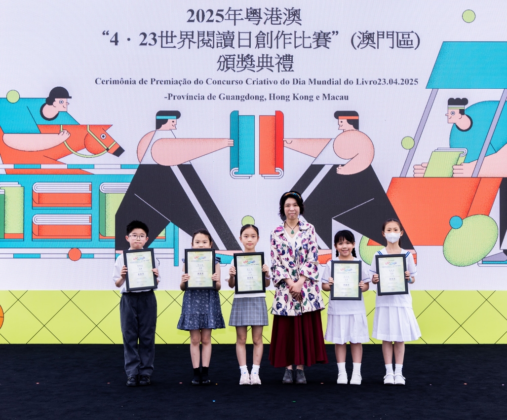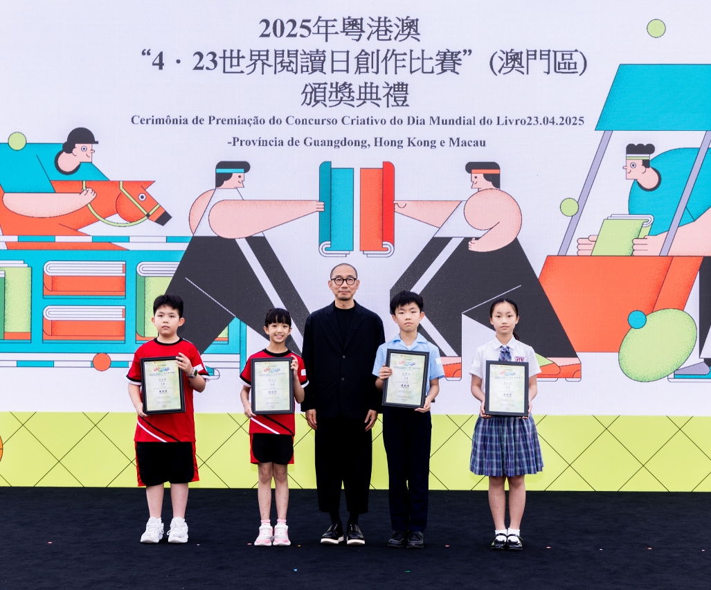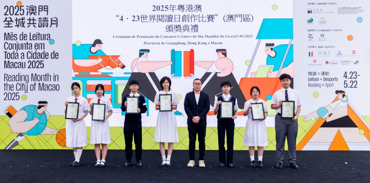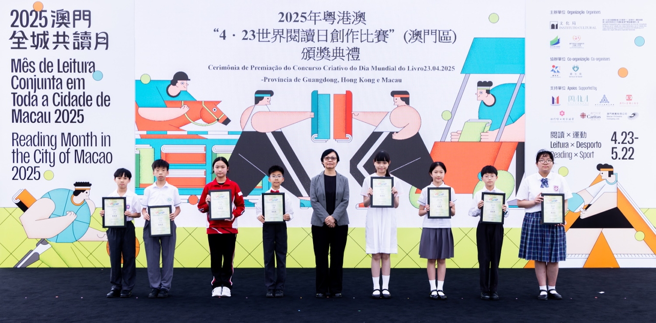 为庆祝“4‧23世界阅读日”,文化局联同广州、深圳及香港等城市之公共图书馆合作举办2025年粤港澳“4‧23世界阅读日创作比赛”。澳门区颁奖礼于4月27日(星期日)在澳门文化中心广场举行,65位学生获颁发奖状及向22间得奖者所属学校致送纪念座,征文组初中组学生分享获奖感言,场面热闹。