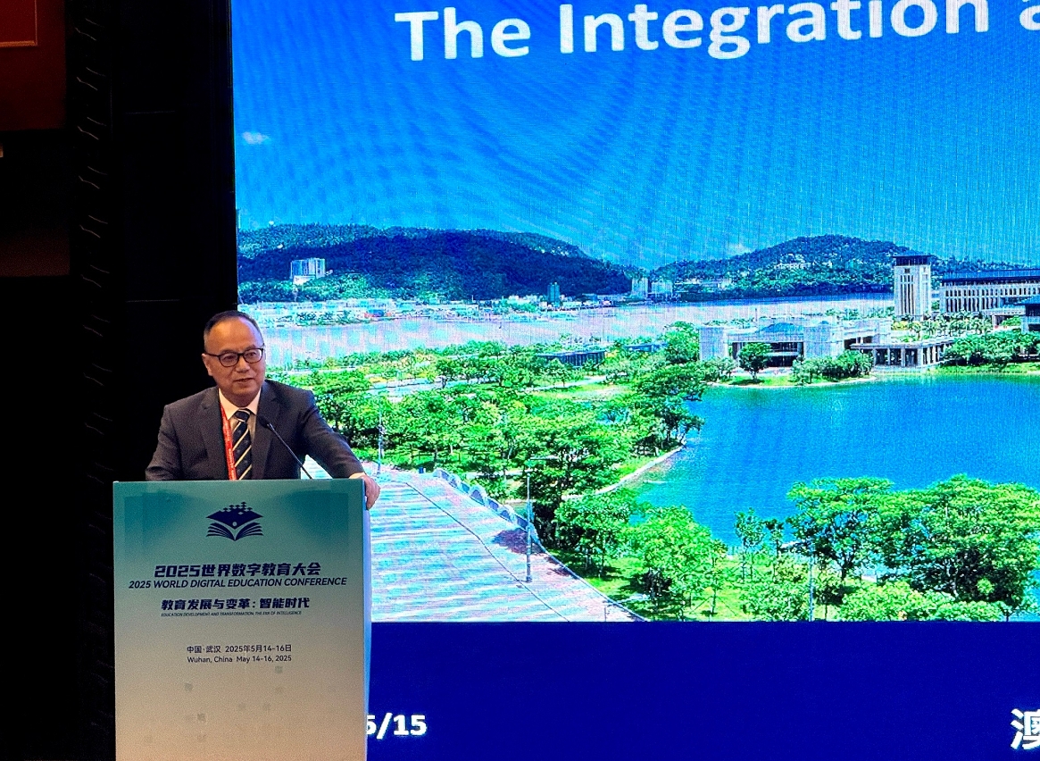 澳门大学校长宋永华受邀出席在武汉举行的2025世界数字教育大会,于全体会议上参与“数字教育高端对话”,并于平行论坛上发表主题报告,与来自全球各地的与会嘉宾携手为世界数字教育未来的发展汇聚智慧、探索路径。