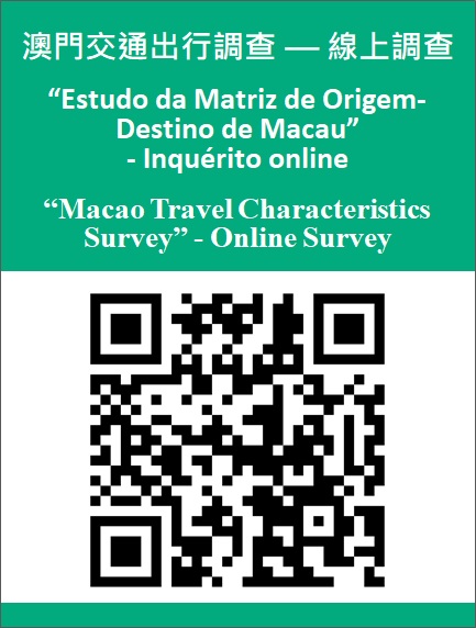 是次线上调查旨在进一步收集巿民、外地雇员及留学生的交通出行习惯和特性,为制定更精准的交通政策和规划提供关键的基础资料。调查以不记名方式进行,可透过网址(https://macautravelsurvey2024.com)或扫描二维码填写问卷,成功完成调查且自愿提供基本联络资料者,可自动参与抽奖。详情可浏览网站专页(https://www.dsat.gov.mo/dsat/events_detail.aspx?a_id=A174AC22EF12033F561BE5BA54A539E1)。
