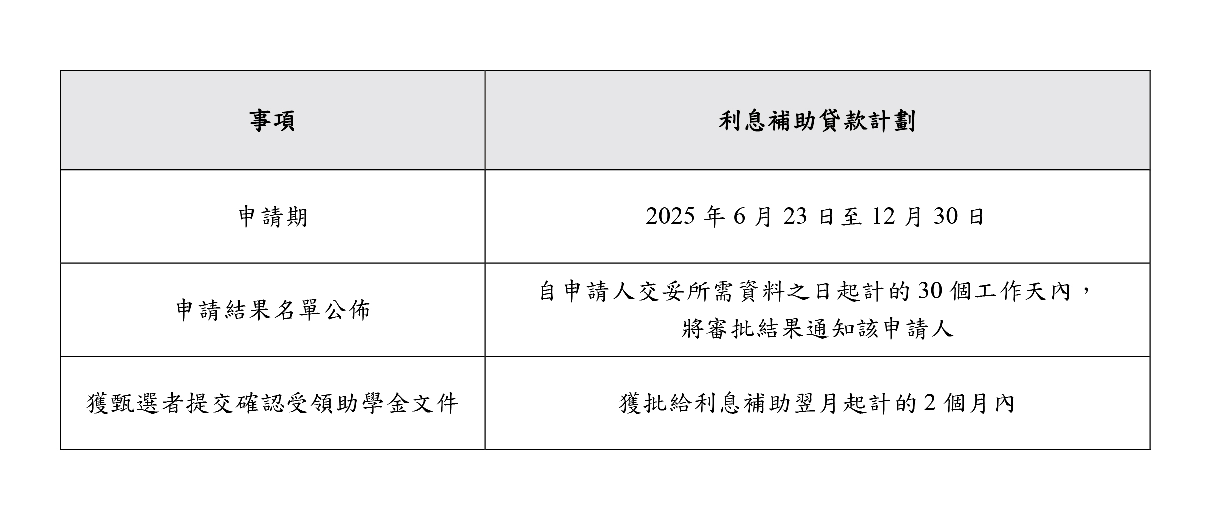 “资助于顶尖学府就读奖学金计划”申请期为6月23日至7月11日,资助对象为修读学士学位课程、学硕连读/学硕博连读学位课程的学士学习阶段申请人。同时,申请人升读的课程须为2025年《泰晤士高等教育世界大学排名》公布的各学科领域名列前50位,或经教育基金行政管理委员会接受的其他具公信力之世界大学专业排名中名列前10位。