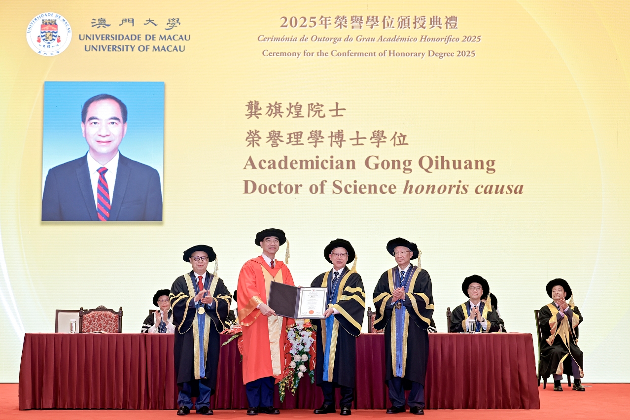 澳门大学今(15)日举行2025年荣誉学位颁授典礼,向国际着名光学专家、北京大学校长龚旗煌院士颁授澳大荣誉博士学位,以表彰其在学术领域的卓越成就及对社会的重大贡献。