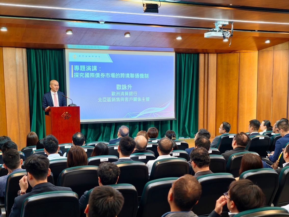 金管局行政管理委员会委员李可欣致辞时表示,特区政府正从金融基建、法律制度、税务优惠、人才配套等方面进行优化,为债券市场等新金融业态创设更理想的发展环境。随着港澳债券市场基础设施于今年1月实现直接联网,澳门与中国内地及香港的金融合作不断深化,跨境投融资需求亦稳步增长。金管局将分阶段升级澳门中央证券托管系统的服务功能,持续优化澳门债券市场的发展环境,促进大湾区市场联动发展。