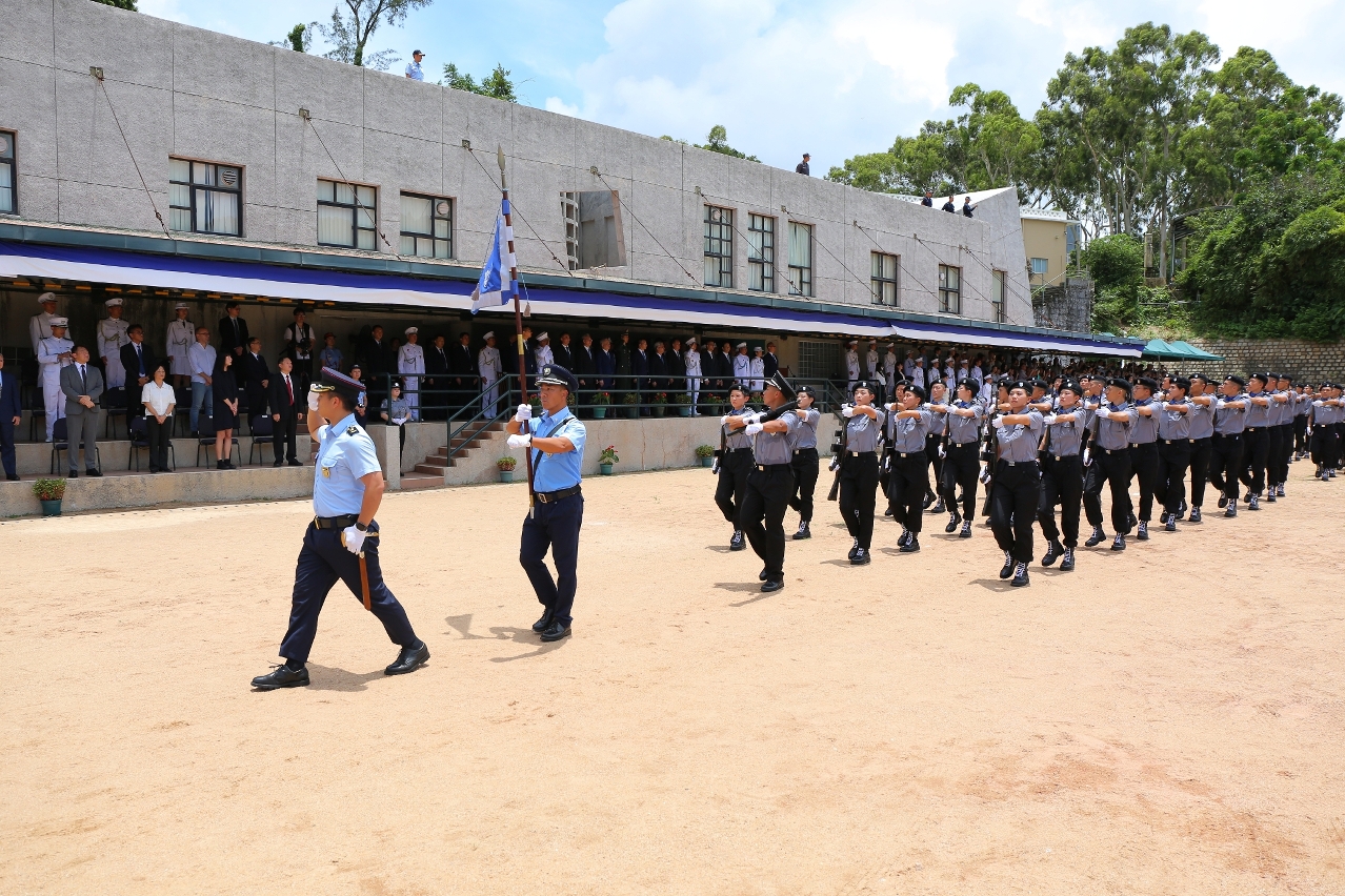 升旗仪式于早上8时正在保安高校隆重举行,随着国歌响起,全体人员向飘扬的国旗及区旗致敬,庄严的升旗仪式凝聚了人员对国家的赤诚和热爱。毕业典礼于上午11时30分在校内举行,61名毕业学员列队肃立,由保安司司长检阅队伍。及后,保安司司长和嘉宾向学员颁发毕业证书及各课程奖项,包括最佳学员奖、射击奖、体育奖、越野跑奖项等,肯定学员在课程中的出色表现。