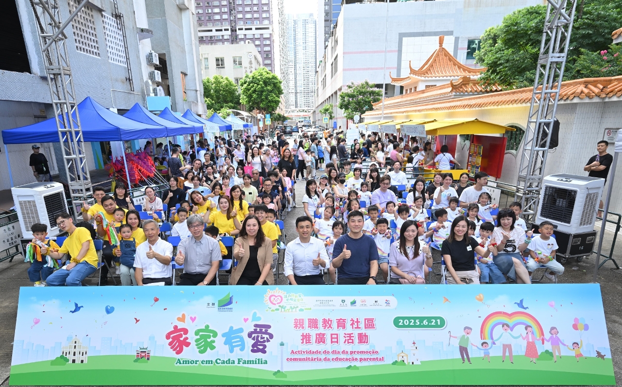 为推广家庭正向互动理念,促进亲子关系与家庭和谐,提升大众对亲职教育的关注与重视,教育及青年发展局于6月21日于氹仔花城公园侧举行 “家家有爱”亲职教育社区推广日活动,现场气氛温馨热闹,吸引逾1,200 家长及子女参与,共度轻松愉快的亲子时光。