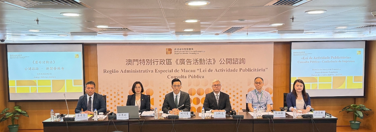 经济及科技发展局今(4)日举行新闻发布会,公布于7月4日至8月2日期间就修改《广告活动法》展开为期30天的公开咨询,新闻发布会由经科局局长邱润华主持。