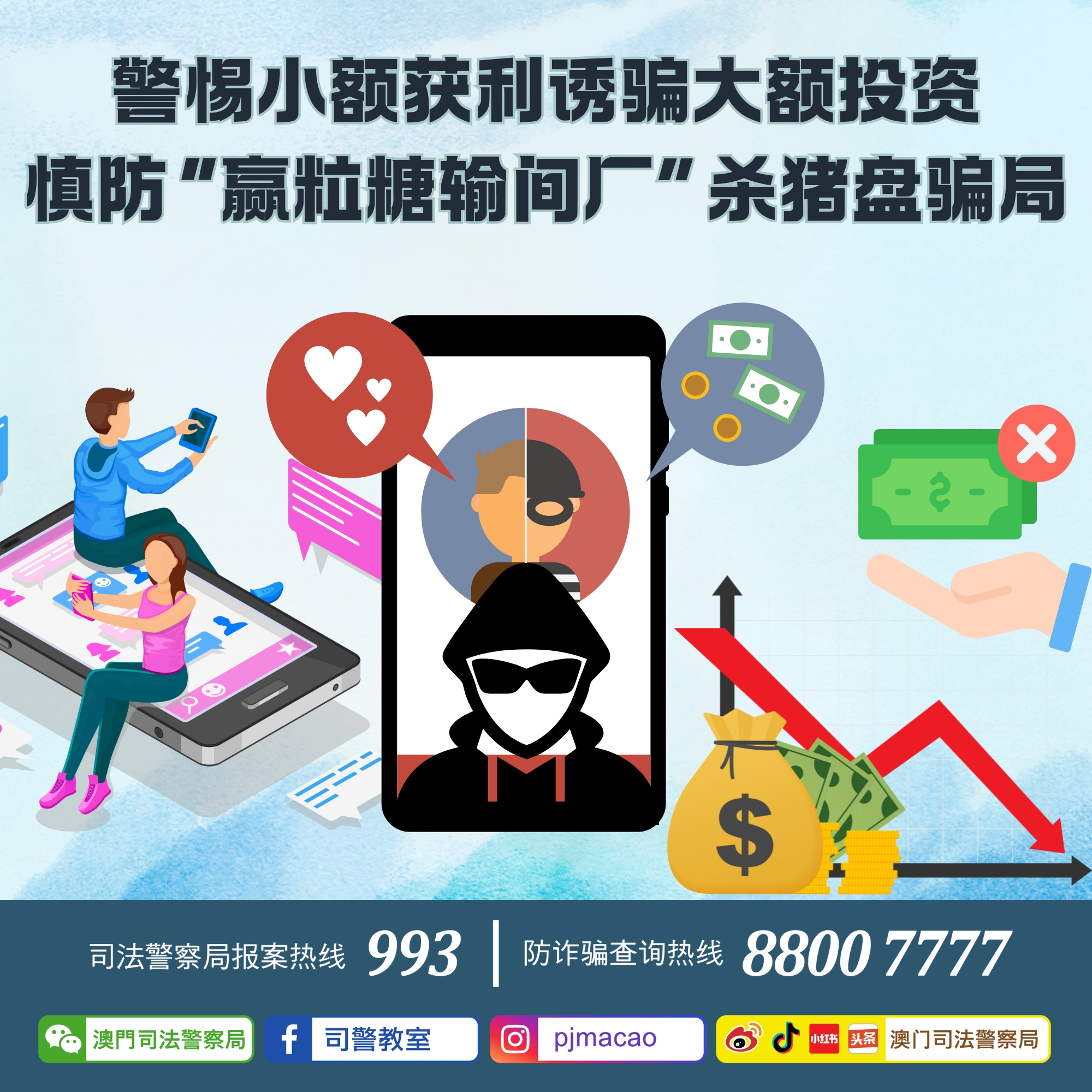• 司警局呼吁警惕小额获利诱骗大额投资 慎防“赢粒糖输间厂”杀猪盘骗局