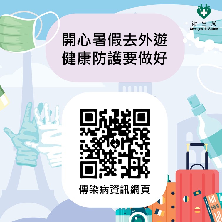随着暑假来临,许多居民计划外游或出外探亲。为确保旅途安全,让居民安心享受假期并保障个人及家人的健康,卫生局提醒居民于外游前做好防范疾病的准备,建议在出发前先查阅目的地有关传染病流行情况、旅行期间做好防蚊措施、注意个人及食物卫生等,以降低感染登革热、呼吸道传染病及胃肠道疾病的风险。