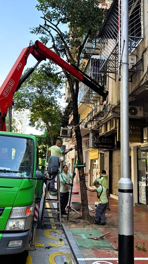 市政署树木养护人员持续检查各区树木,并疏剪枝条过密的树木,以减轻树冠重量及受风面积,降低倒塌的风险。当悬挂八号或以上风球期间,为保障公众安全,市政署管辖的绿化及休憩设施暂停对外开放,风球除下后,仍须待人员分析评估,因应树木及设施的受损情况作应急处理,才逐步分阶段开放,市民切勿擅闯围封区域,以免发生意外。而私人地方拥有者或使用者,应定期检查树木情况,做好预防措施,减少事故发生。市政署提醒市民,应避免在风雨期间或其后数日内进入山坡林区及在树下逗留。如发现树木生长及健康情况异常,可透过“市政在线”或市民服务热线2833 7676反映。