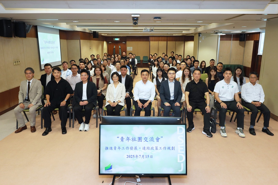 为加强政府与青年社团的沟通,促进青年政策与社团工作方向的有效对接,教育及青年发展局于7月15日举办“推进青年工作发展‧连结政策工作规划”青年社团交流会,透过广泛听取青年社团建议,动态掌握青年群体的核心需求与发展趋势,为优化青年政策提供决策依据。教青局副局长黄嘉祺、青年厅厅长张敏辉、青年发展处处长赵宝威,以及80名青年社团代表出席。