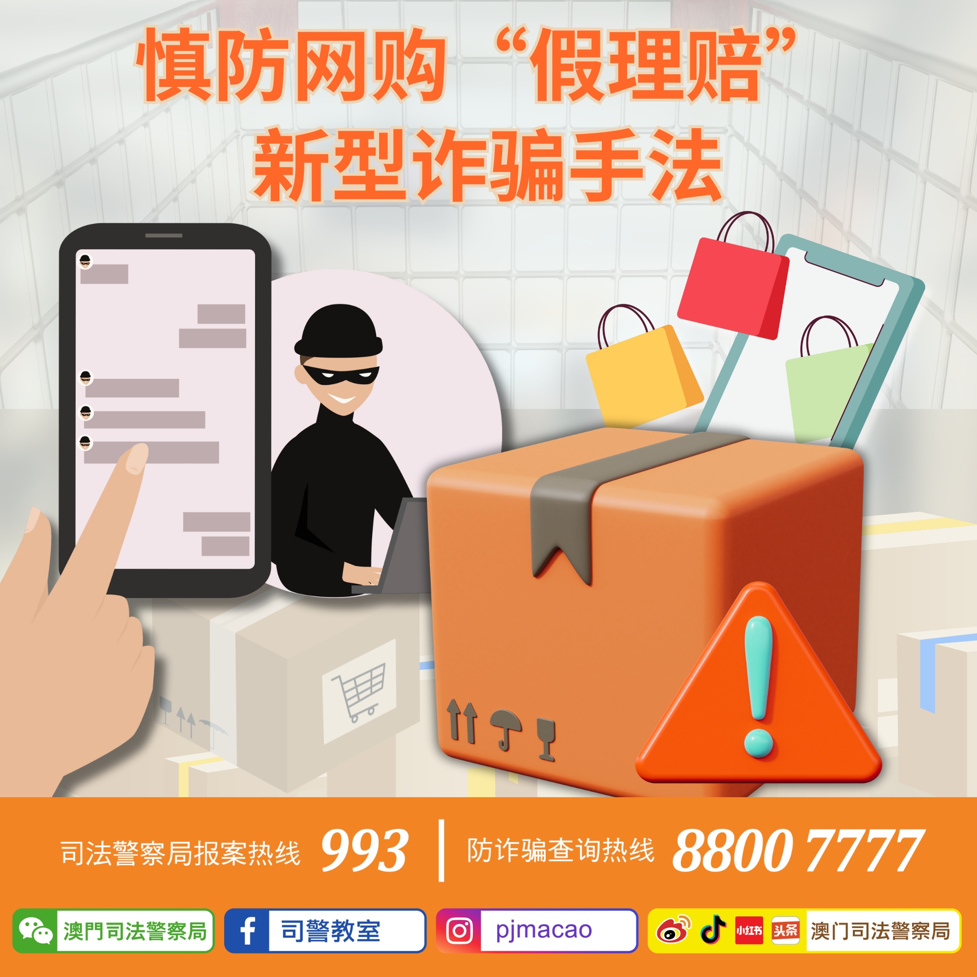 3.如有怀疑,应使用司警局“反诈程式”查核风险指数,或致电司警局防诈骗查询热线88007777或报案热线993求助。