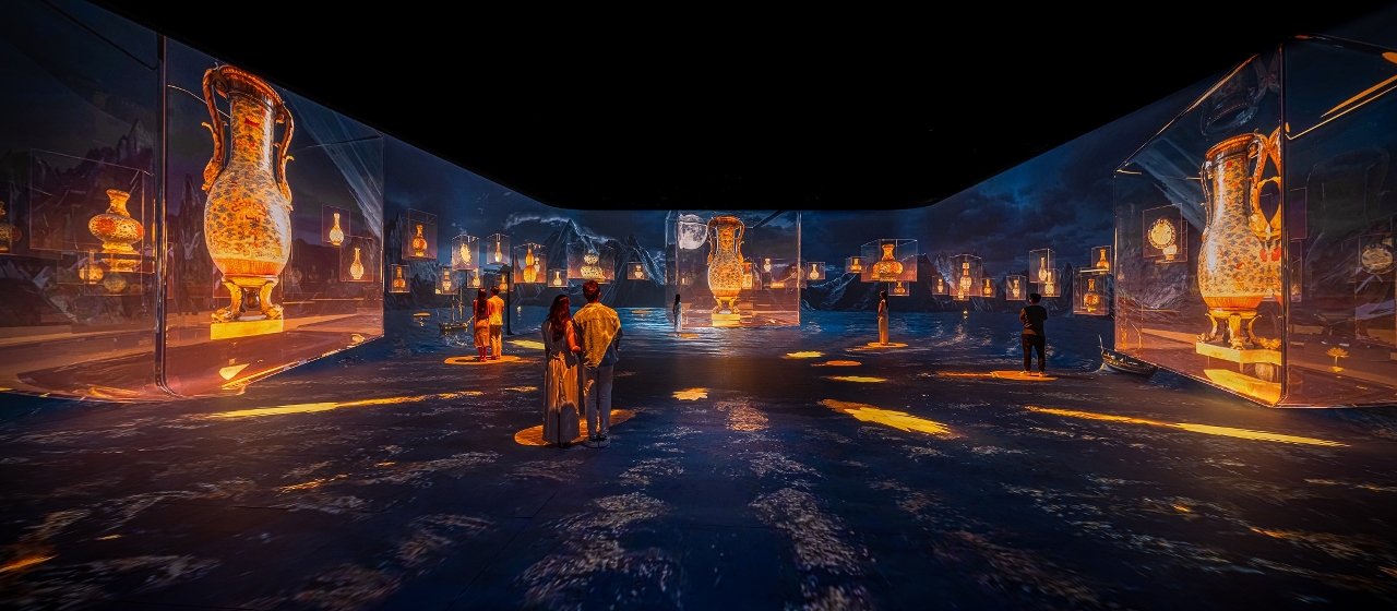 由六大综合旅游休闲企业主办的特展是“艺文荟澳”的独特板块,今届更堪称万花筒式的艺术博览。银河娱乐集团的“Bruno Moinard 意象境界”,公开法国设计大师三百余幅珍贵手稿与绘画,展示其融合十七世纪法式装饰精髓与现代美学的匠造密码,更曝光为澳门嘉佩乐酒店量身定制的空间设计方案。新濠博亚娱乐的“哈斯兄弟:月光”,以德州奥斯汀消逝的“月光塔”街灯为灵感,将社区记忆淬炼为沉浸光影装置,引领观众步入静谧月夜,重拾人与时空的和鸣哲思。美高梅“cAI™实验室2.0”掀起科技艺术风暴,蔡国强与人工智能艺术家cAI™共创多维实验场,共创互动中点燃数位烟花盛典,在“你在看我,还是我在看你?”的双重观察下,开启虚实交迭的崭新艺术探索。金沙中国有限公司“快乐之泉多巴胺”将威尼斯人化身时空剧场,集结亚、欧、美艺术家共演视觉交响:当代笔触重构古罗马神祇的永恒之美,《芝麻街》角色跃入斑斓洪流,以奔涌视觉语汇直抵心灵秘境。澳娱综合度假股份有限公司“毕加索:纵情寻美”,展出逾140件来自毕加索故居博物馆的珍贵原作,展示毕加索不同阶段的创作风格,以及他于媒介的探索与突破,引领观众瞭解其情感世界及对故乡安达卢西亚的深厚连系。澳门永利渡假村“千年瓷都,莲通天下——‘景德镇.澳门’海丝瓷光数字艺术展”,以360度沉浸空间重现景德镇引领世界制瓷技艺的进程;另汇聚30多位国家级与当代工艺大师代表作,向世界展现景德镇陶艺的最高水平。