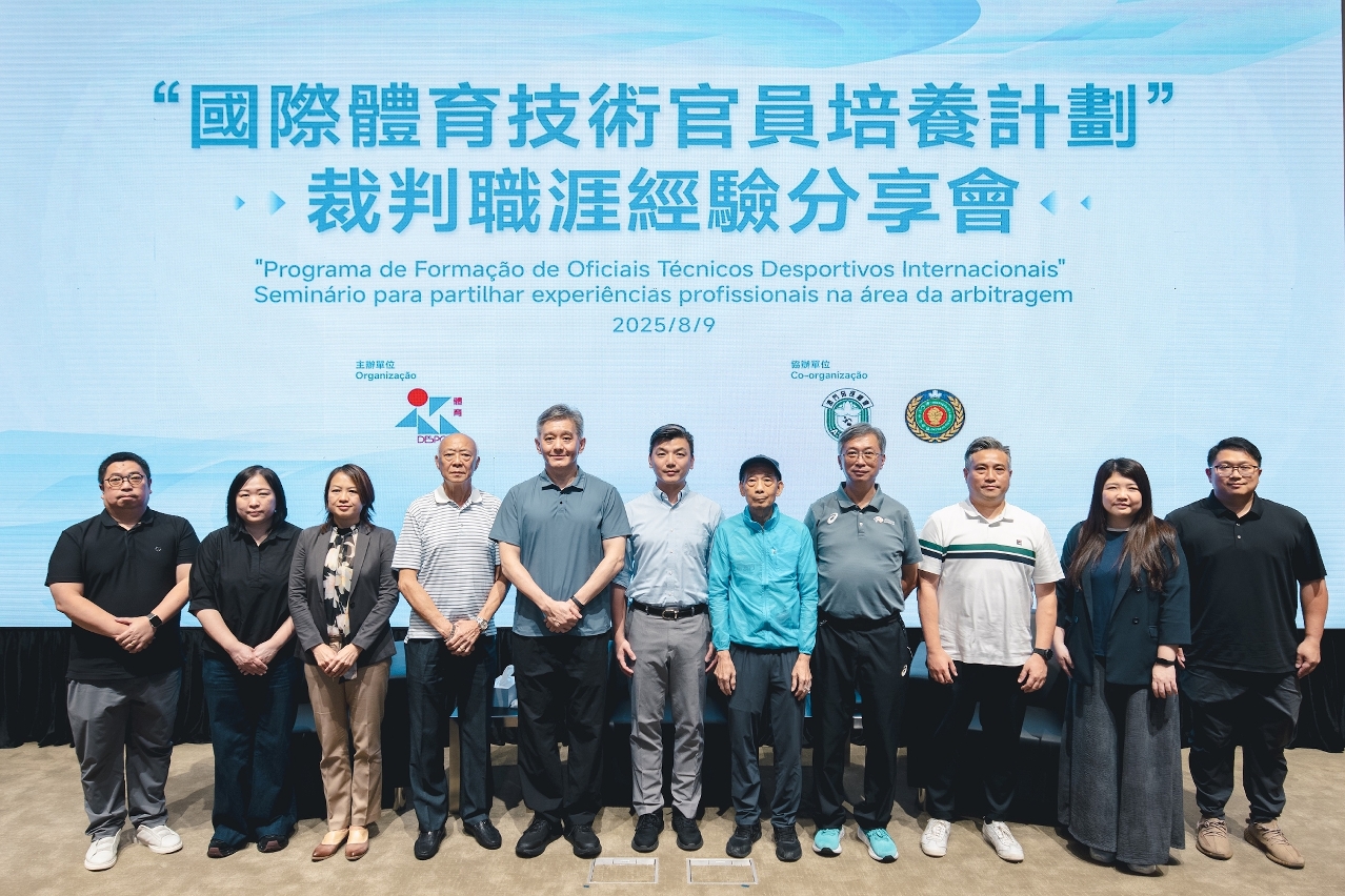 为加强本澳体育人员对国际裁判工作的认识,由澳门特区政府体育局主办、澳门田径总会及澳门空手道联盟协办的『“国际体育技术官员培养计划”裁判职涯经验分享会』于昨(9)日下午三时在望厦体育中心举行。活动吸引约100名来自本澳各体育总会的成员、裁判员、教练员、运动员等人士出席,气氛热闹。