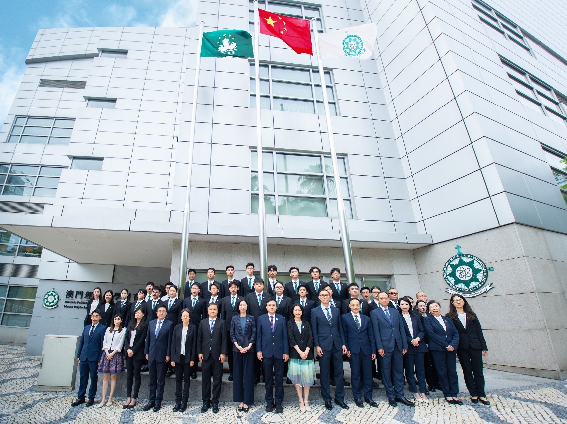 升旗仪式由澳门理工大学学生国旗仪仗队执行。仪仗队队员迈着整齐、铿锵有力的步伐,护送中华人民共和国国旗、澳门特别行政区区旗及澳门理工大学校旗进场。随着国歌奏起,五星红旗冉冉升起,全体师生向国旗行注目礼,庄严隆重。