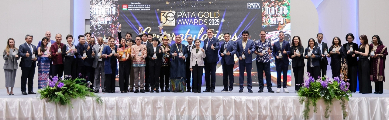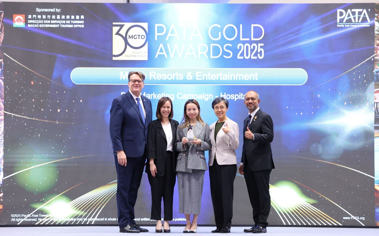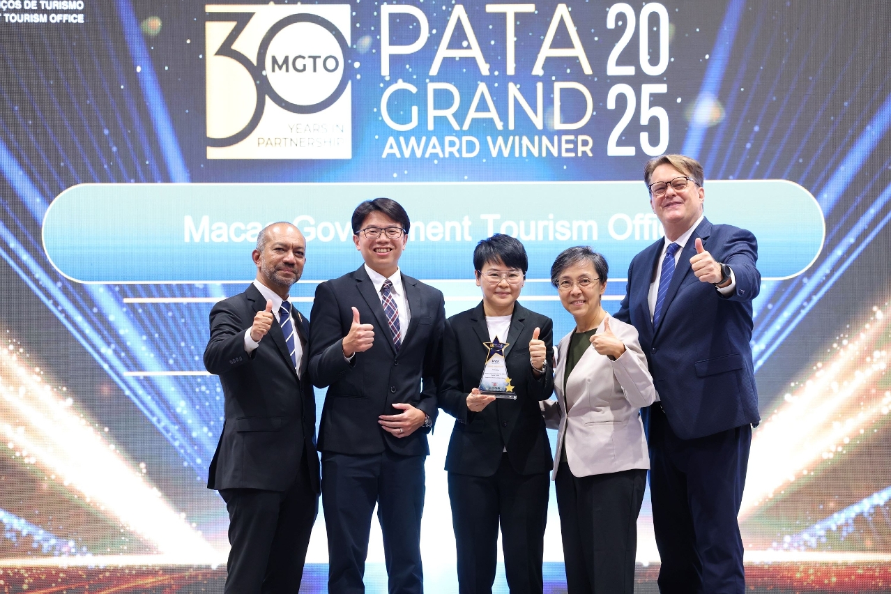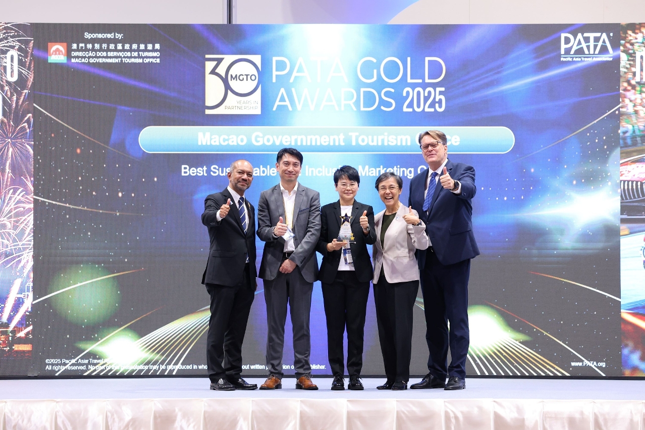 交易会亮点活动之一的 2025年亚太旅游协会金奖颁奖礼于27日晚上举行。旅游局与六家综合度假休闲企业合办的“感受澳门 专属体验”宣传项目夺得亚太旅游协会(PATA,下称“协会”)“市场推广”大奖。此外,旅游局及澳门两家旅游企业凭其他推广项目亦分别获颁金奖,得奖项目分别通过款待行业的可持续发展、社区旅游及IP经济,推广澳门旅游,取得良好效果。