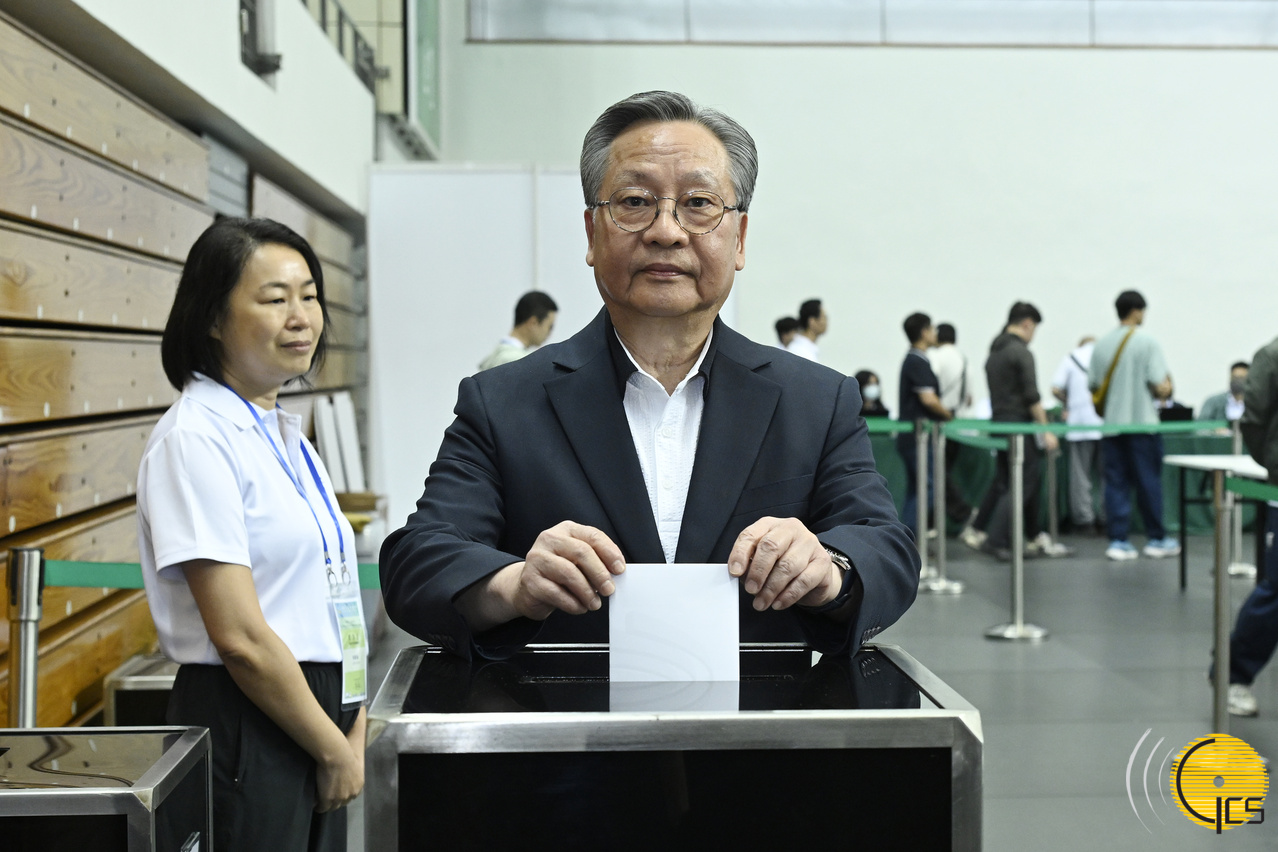 立法会主席高开贤今(14)日早上到所属的澳门理工大学体育馆票站投票。他接受记者访问时表示,投票流程十分顺利,呼吁合资格选民踊跃投票,积极履行公民权利。