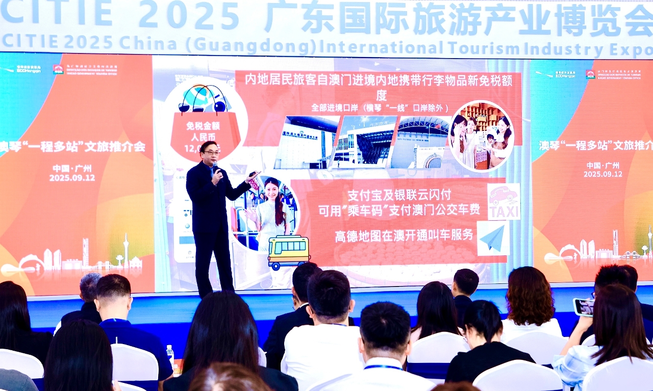 旅游局联合广东省文化和旅游厅与香港旅游发展局在“2025广东国际旅游产业博览会”设置展台,并与横琴粤澳深度合作区经济发展局合办推介会,推广“一程多站”及澳琴联游,促进区域旅游联动发展,拓展客源市场。