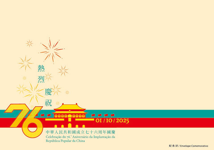 为庆祝中华人民共和国成立七十六周年国庆,邮电局特于二零二五年十月一日上午九时至下午二时,在邮政总局集邮商店设置临时柜台,为市民提供加盖“热烈庆祝中华人民共和国成立七十六周年国庆”纪念邮戳服务。